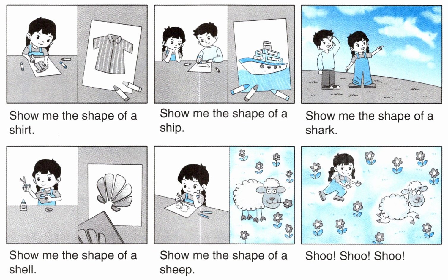 任务一:圈出 show、shape、shirt、ship、shark、shell、sheep、shoo