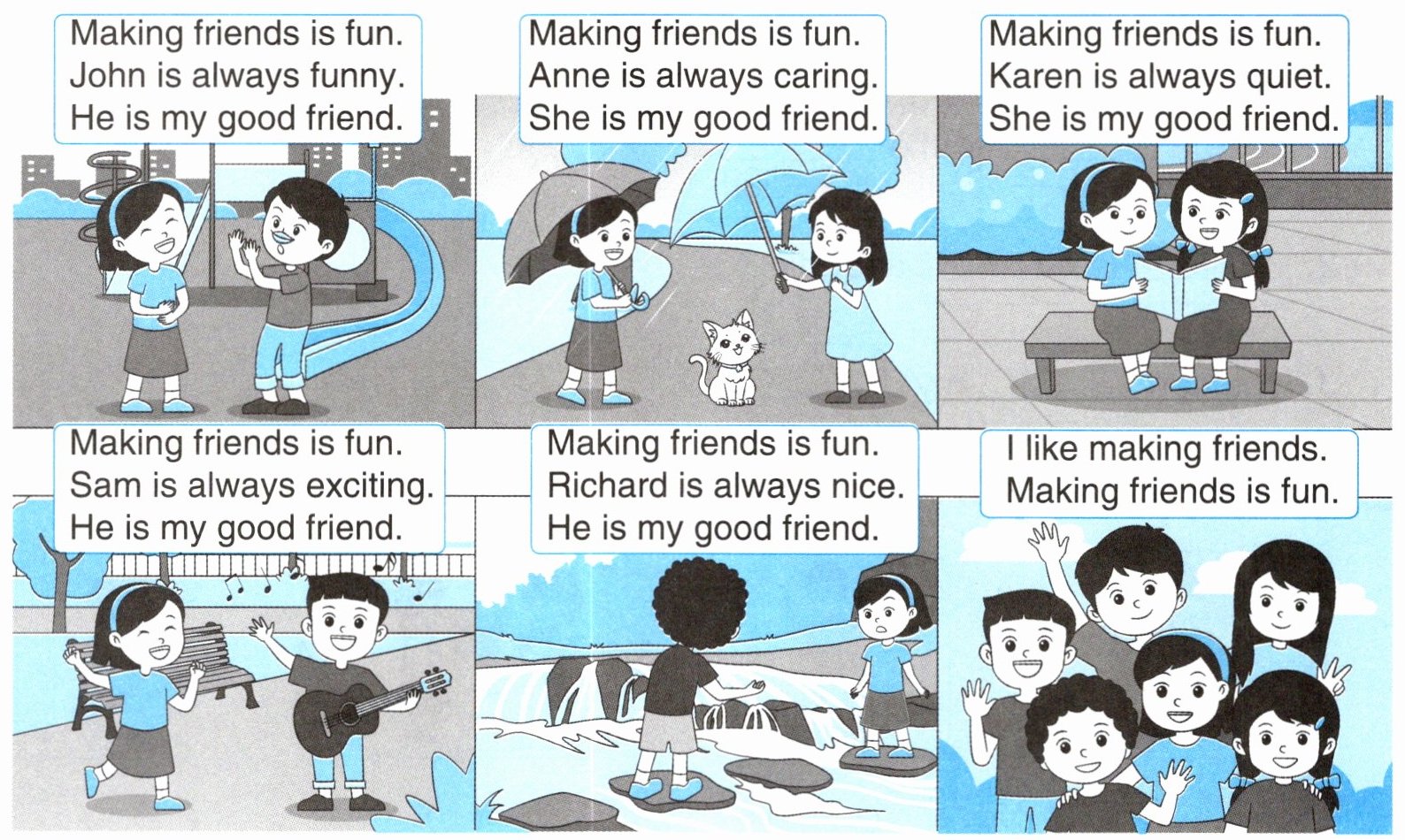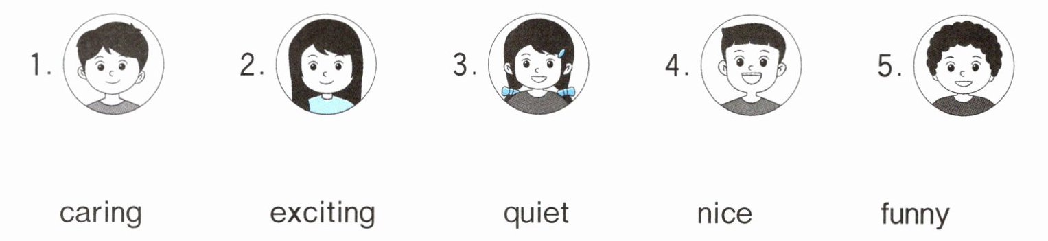 1—funny 2—caring 3—quiet 4—exciting 5—nice