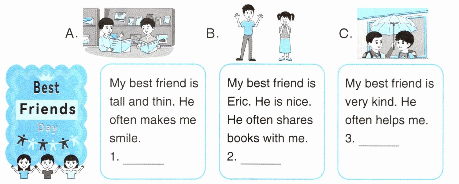 一 下面是“好朋友活动日”征集到的一些作品,请给它们配上合适的图片。