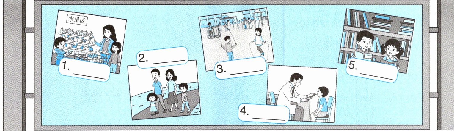 二 看社区活动宣传栏展示的照片,为照片选择合适的描述。