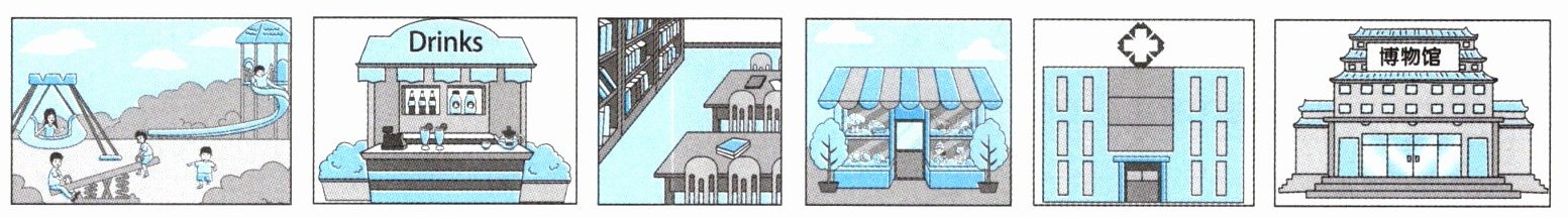任务一:圈出第一、三、四、六幅图 任务二:1. play games 2. toy shop 3. books 4. old