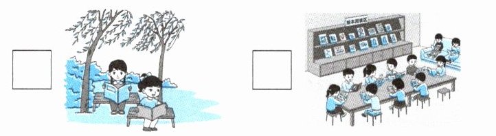 读关于社区的描述,勾选出合适的图片。