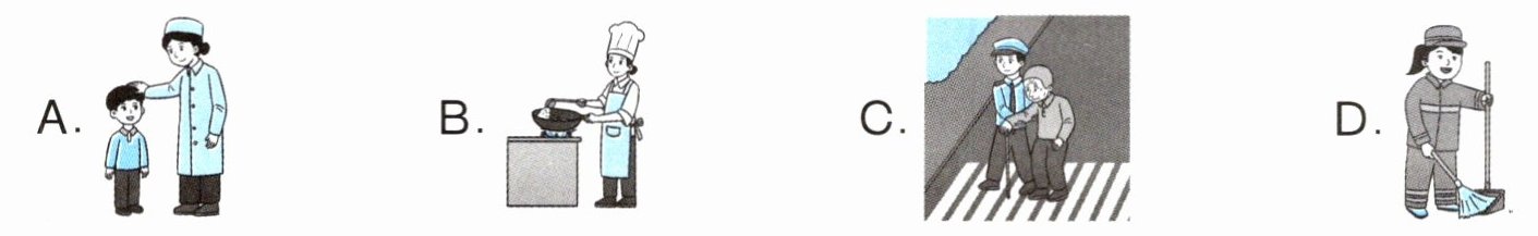 一 社区和谐离不开社区工作者的付出。 读句子,选择正确的图片。