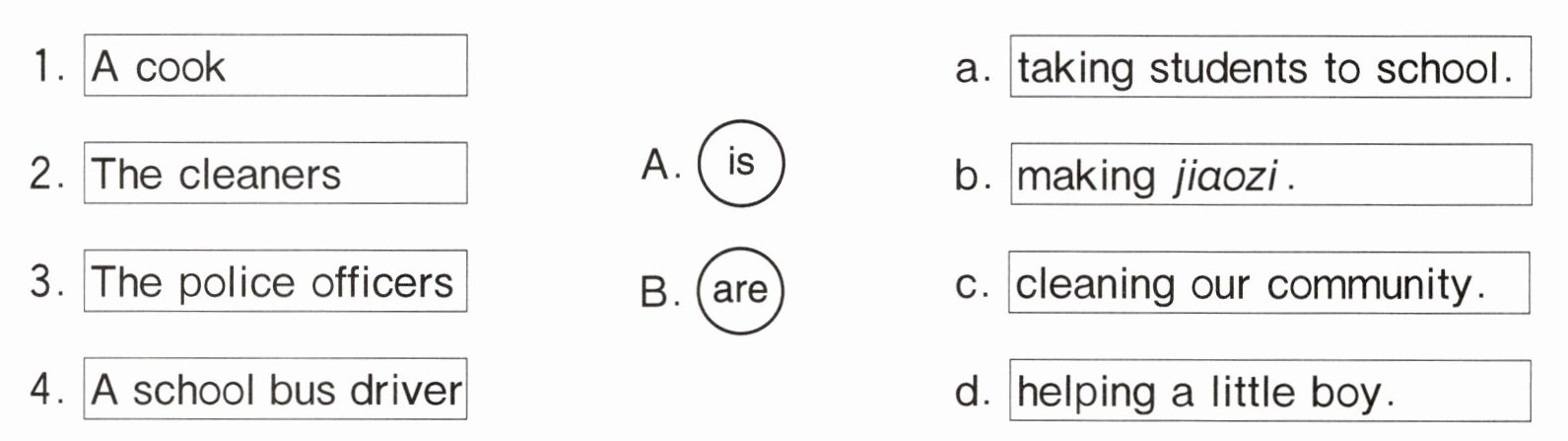 小志愿者们正在“老人之家”帮忙,勾选正确的短语并介绍。