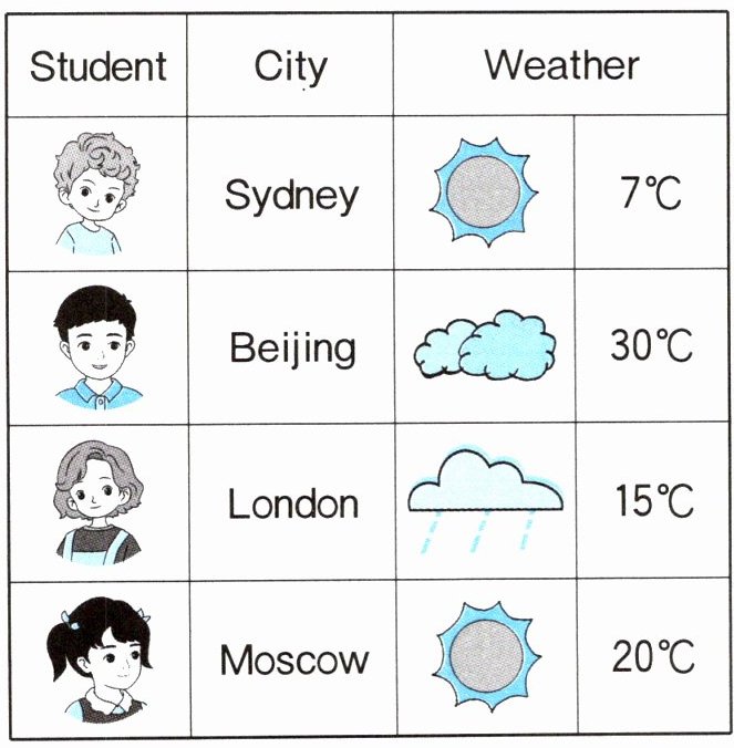 )4. It is sunny in Moscow.任务二:根据表格,选择正确答案。