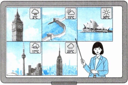 二 我们可以通过多种媒体获取天气情况。 看图识天气,选一选。