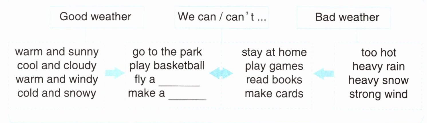 任务一:根据短文内容,将在好天气和坏天气可以做的活动分类。