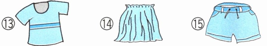 skirt:⑭ shorts:⑮ T-shirt:⑬
