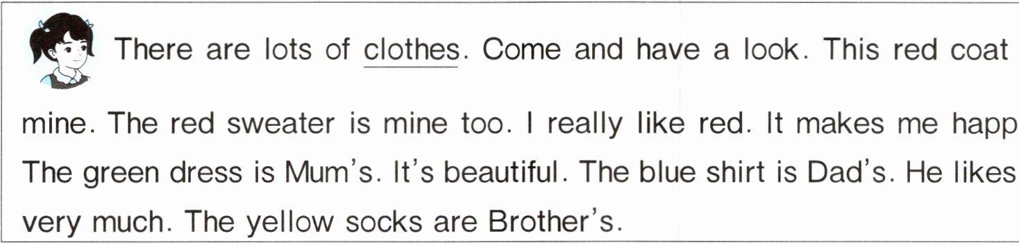 任务二:根据上下文猜测画线单词 clothes 的意思,并圈出来。