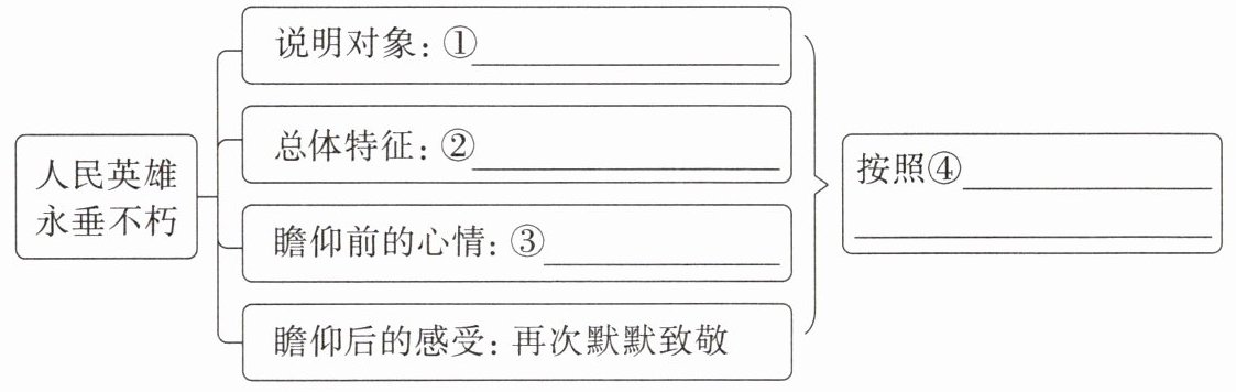 ①首都人民英雄纪念碑 ②巍峨、雄伟、庄严 ③万分崇敬 ④空间顺序