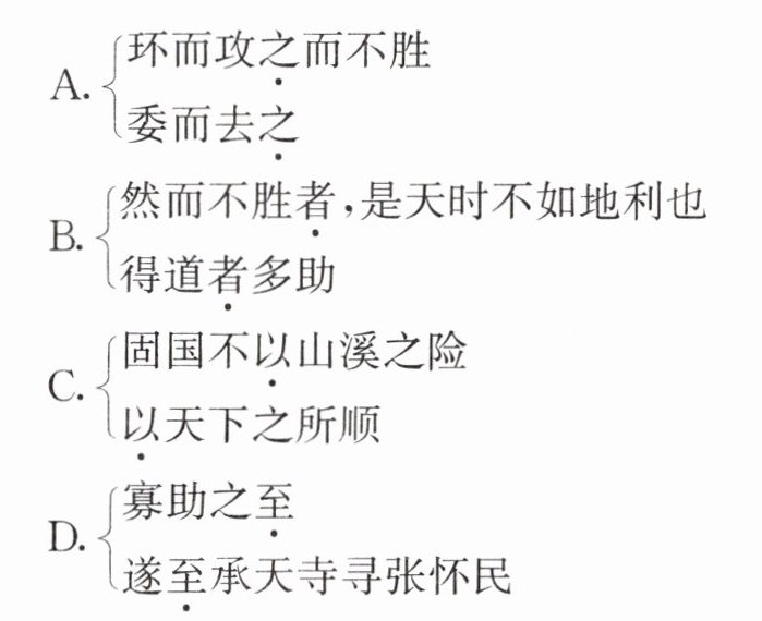 )。A. “天时不如地利,地利不如人和”是全文的中心论点。