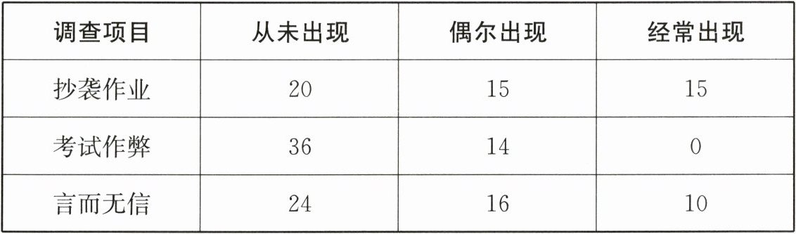 8. 学校对八年级学生进行了有关“诚信”情况的调查。调查结果见下表。