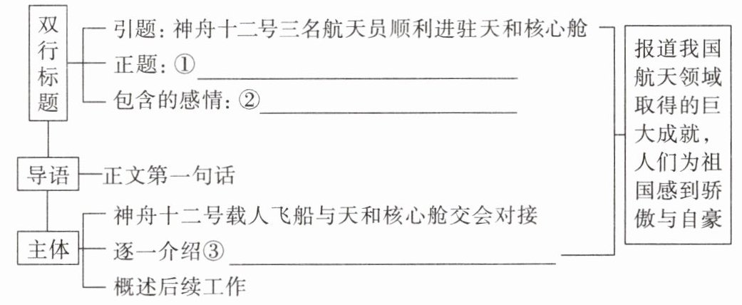 ①中国人首次进入自己的空间站 ②自豪、骄傲 ③航天员进驻核心舱的过程