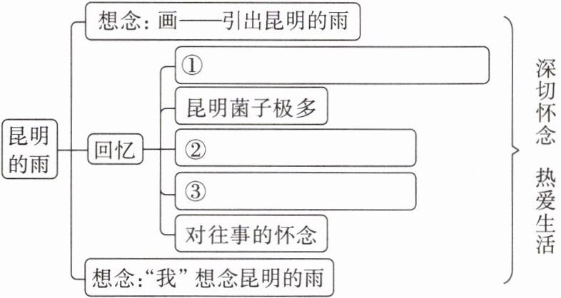 :这东西这么好吃?!3. 课文第2段和第11段中作者都只写了一句“我想念昆明的雨”,分析这两段在课文中的作用。