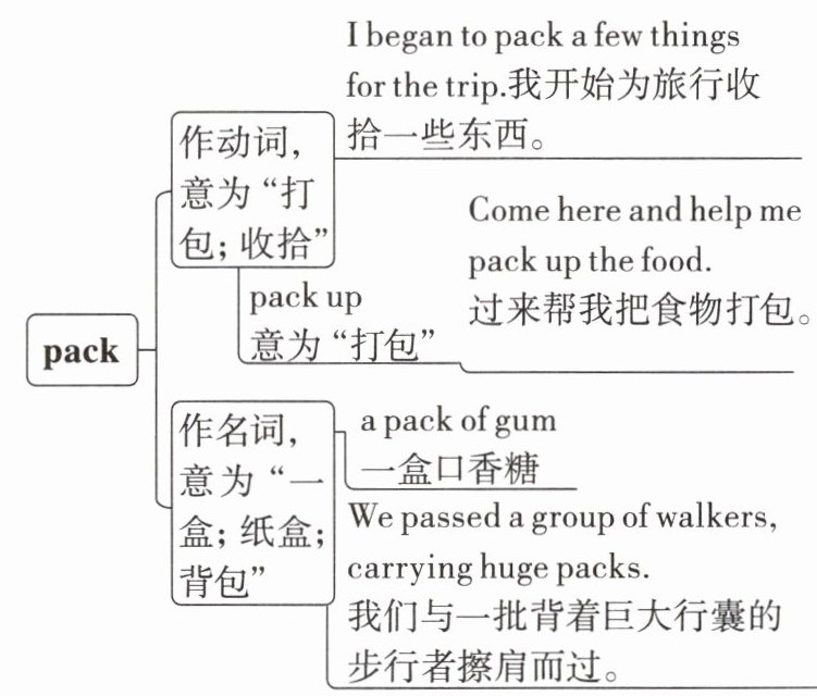 Come here and help me pack up the food. 过来帮我把食物打包。