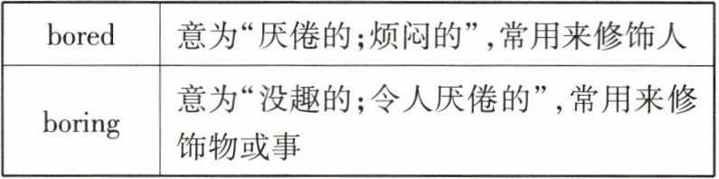 We are bored with the boring movie. 我们对这部无聊的电影感到厌烦。