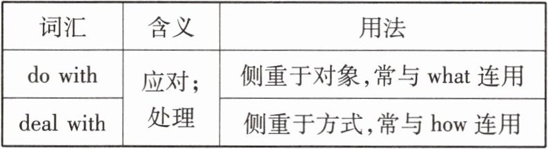 |do with|应对;处理|侧重于对象,常与 what 连用|