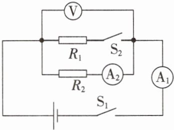 (选填$“R_1”$或$“R_2”)$工作,电流表$ A_1 $的示数等于