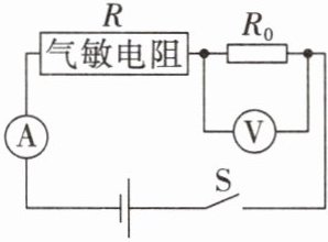 5. 天然气是一种清洁能源,方便居民使用的同时,存在着泄漏的安全隐患。物理兴趣小组在老师的指导下设计了天然气泄漏检测电路,如图所示,电源电压恒定不变,R₀ 为定值电阻,R 为气敏电阻。R 的电阻随天然气浓度的增大而减小,则天然气(