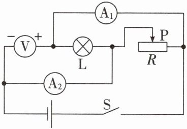 )。A.电压表 V 的示数不变,电流表$ A_2 $的示数变小