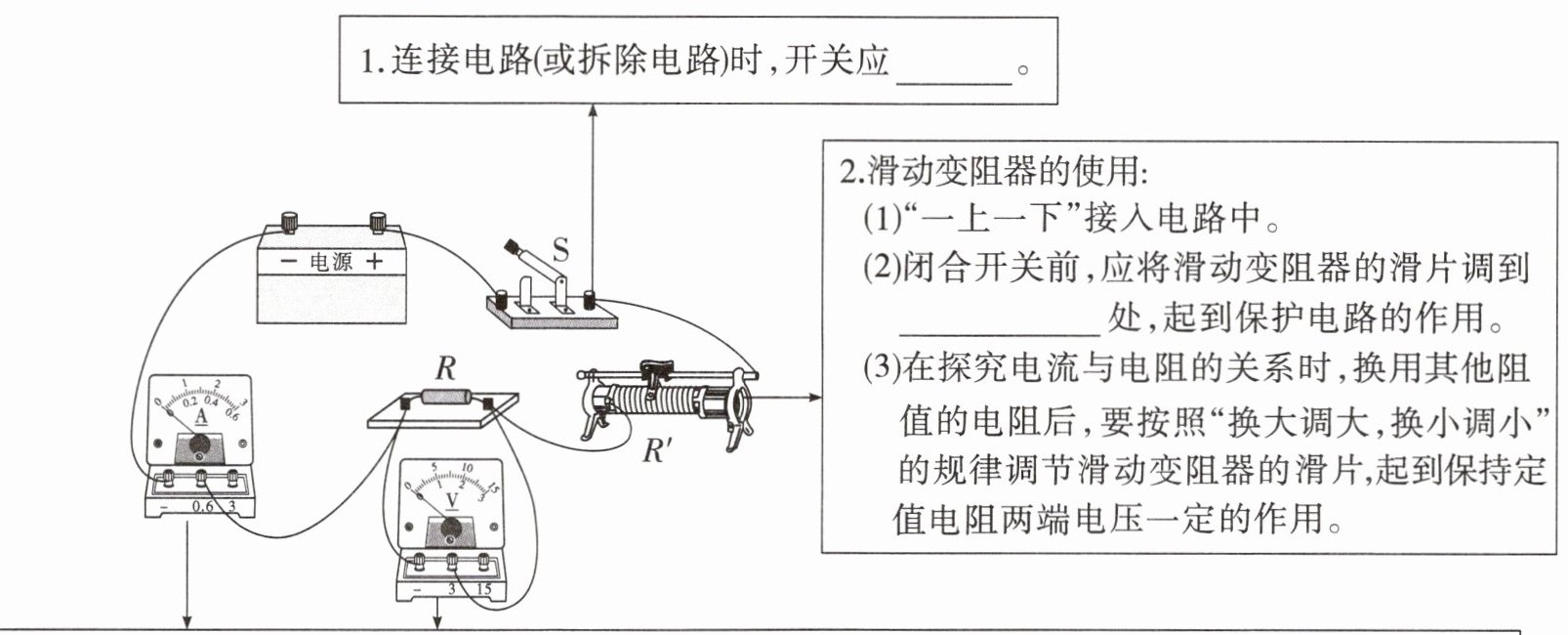 。2. 实验中应调节滑动变阻器的滑片,以改变电路中的电流及被测电阻两端的电压。