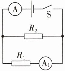 (1)由图知,$R_1$与$R_2$并联,电流表$A_1$测$R_1$支路电流,电流表$A$测干路电流。