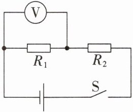 9. (2024贵州)如图所示,电源电压U = 3 V保持不变,定值电阻$R_1 = 5 Ω,$闭合开关S,电压表示数为2 V。
