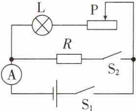 10. 在如图所示的电路中,灯泡 L 上标有“6 V 3 W”字样(不计温度对灯丝电阻的影响)。当开关$S_{1}$、$S_{2}$均闭合,且滑动变阻器的滑片 P 在最左端时,电流表示数为 1.5 A,灯泡 L 正常发光;当开关$S_{1}$闭合、$S_{2}$断开,且滑动变阻器的滑片 P 在中点时,电流表的示数为 0.25 A。求: