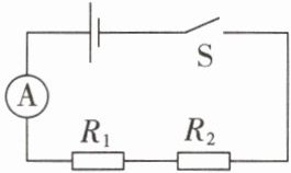 9.如图所示,定值电阻$R_1的电阻为10\ \Omega$,定值电阻$R_2的电阻为20\ \Omega$,闭合开关$S$后,电流表A的示数为$0.1\ A$。求: