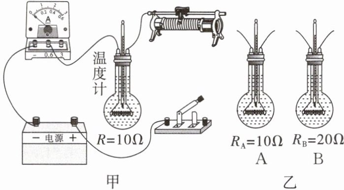 (选填“A”或“B”)烧瓶与图甲中烧瓶内的电阻丝并联,并给该烧瓶内装入与图甲烧瓶中的液体质量