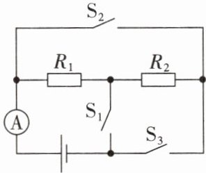 (2) 当 $S_3$ 闭合, $S_1$、$S_2$ 断开时,$R_1$与$R_2$串联,电流表测电路中的电流,此时电路中的总电阻: