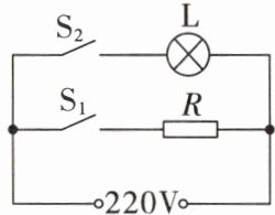 6. (2024 广东)某消毒柜具有高温消毒和紫外线杀菌功能,其简化电路如图所示。发热电阻 $ R = 110 \Omega $,紫外灯 L 规格为“220 V 50 W”。闭合开关 $ S_1 $ 和 $ S_2 $,消毒柜正常工作,求:
