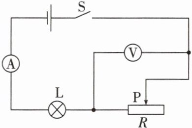 (2) 小灯泡额定功率 $ P_{L额}=1.25\,W $,由 $ P=UI $ 得额定电流 $ I_{L额}=\frac{P_{L额}}{U_{L额}}=\frac{1.25\,W}{2.5\,V}=0.5\,A $。串联电路电流处处相等,滑动变阻器电流 $ I_{R}=I_{L额}=0.5\,A $,由 $ I=\frac{U}{R} $ 得滑动变阻器接入电阻 $ R=\frac{U_{R}}{I_{R}}=\frac{2\,V}{0.5\,A}=4\,\Omega $。