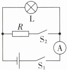 (2)开关$S_1$、$S_2$都闭合时,$L$与$R$并联,电源电压$U=12\,V$,$R$两端电压$U_R=U=12\,V$,通过$R$的电流$I_R=\frac{U_R}{R}=\frac{12\,V}{40\,\Omega}=0.3\,A$。