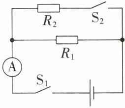 (2) 再闭合开关 $ S_2 $ 后,$ R_1 $ 与 $ R_2 $ 并联,电流表测干路电流,