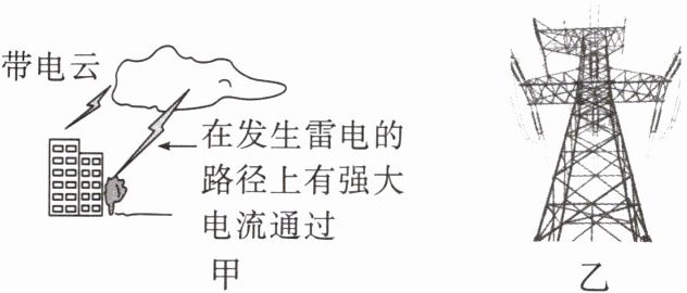 11. (物理学与日常生活)如图甲所示,在一个雷电交加的日子里,某村民到大树下躲雨,不幸被雷电击中造成重伤。雷电时,强大的