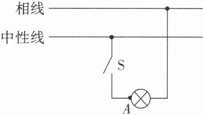 9. 在如图所示的电路中,A点是灯头接导线的螺丝(灯丝完好),某人用手接触电路中的A点且脚与大地连通。当电路的开关S断开时,他