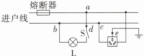 B.若 $ e $ 点所在导线断路,三孔插座仍可安全使用