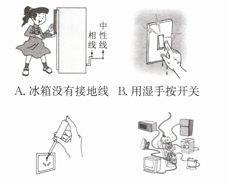 3. 徐伟同学发现,日常生活中妈妈有很多不规范的用电行为,很容易造成危险。于是他对妈妈的某些用电行为进行了总结,以便及时纠正:
