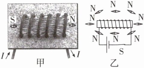 极的方向,这个方向就是该点的磁场方向。由图甲、乙判断,通电螺线管外部的磁场与条形