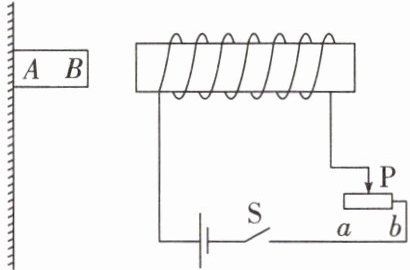 12. 如图所示,闭合开关S之后,条形磁体静止在左边的竖直墙面上,请判断条形磁体的A端是