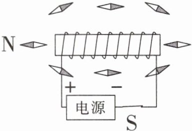 (2)对调电源正、负极,小磁针N极指向与第(1)问中相反。这表明,通电螺线管外部的磁场方向与