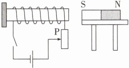 (选填“左”或“右”)的摩擦力;若将滑动变阻器滑片P向下滑动,条形磁体受到的摩擦力将变大