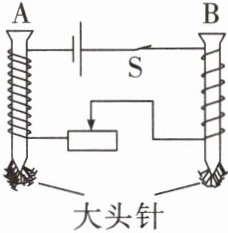 (2)串联电路中电流处处相等,A、B串联是为了控制电流相同,从而可以研究电磁铁磁性的强弱与线圈匝数的关系。