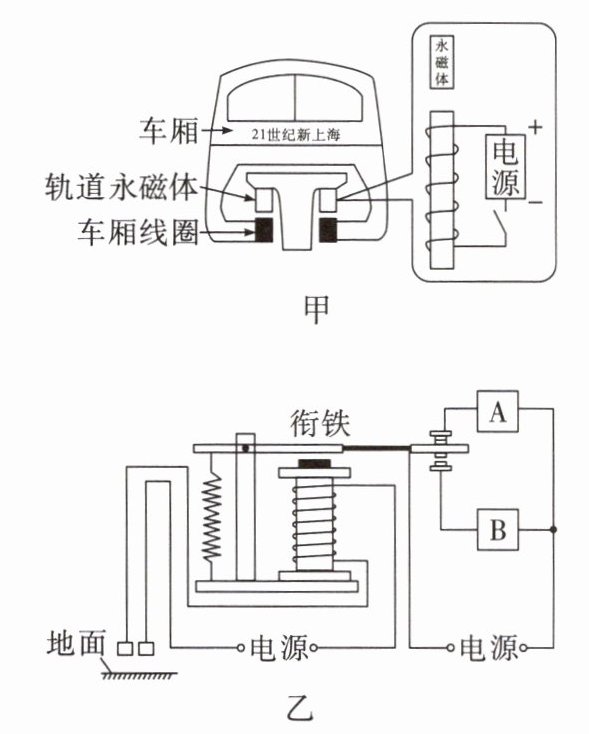 上海磁悬浮列车是“常导磁吸型”磁悬浮列车,是世界上“商业运营中最快的列车之一”,其结构如图甲所示。电磁悬浮是对车载的悬浮电磁铁励磁而产生可控制的电磁场,电磁铁与轨道上的长定子直线电机定子铁芯相互吸引,将列车向上吸起,并通过控制悬浮励磁电流来保证稳定的悬浮间隙。
