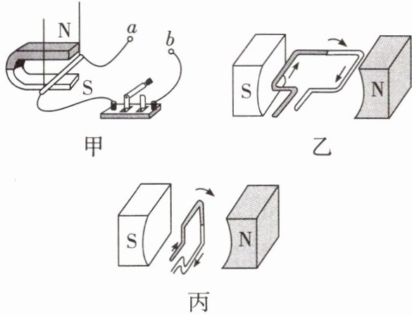 (1)利用如图甲所示的装置研究磁场对电流的作用时,必须有电源,所以应在a、b间接入电源。利用该原理制成了电动机。