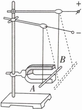 [变式1](2025江门期末)用如图所示的装置探究磁场对通电直导线的作用。给铝棒AB通电,观察到AB向右运动,要使AB通电后向左运动,下列做法中