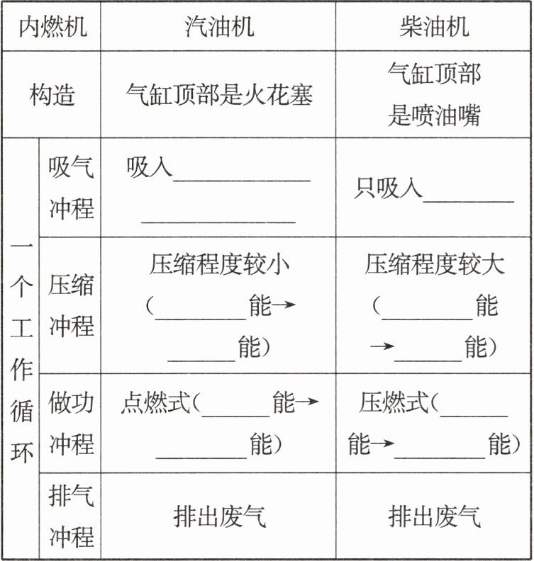 运动,把废气排出气缸。3. 拓展:在四冲程内燃机中,吸气、压缩和排气冲程是依靠飞轮的惯性来完成的,而