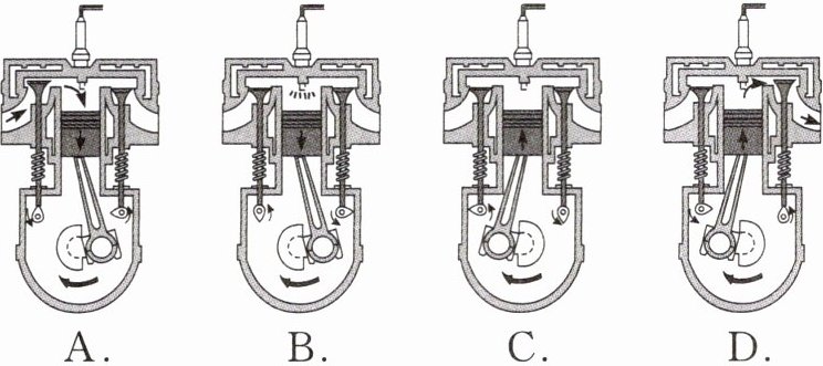 2. 吸气冲程、压缩冲程、做功冲程、排气冲程
