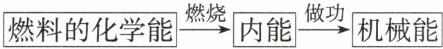 $\boxed{燃料的化学能}\xrightarrow{燃烧}\boxed{内能}\xrightarrow{做功}\boxed{机械能}$
